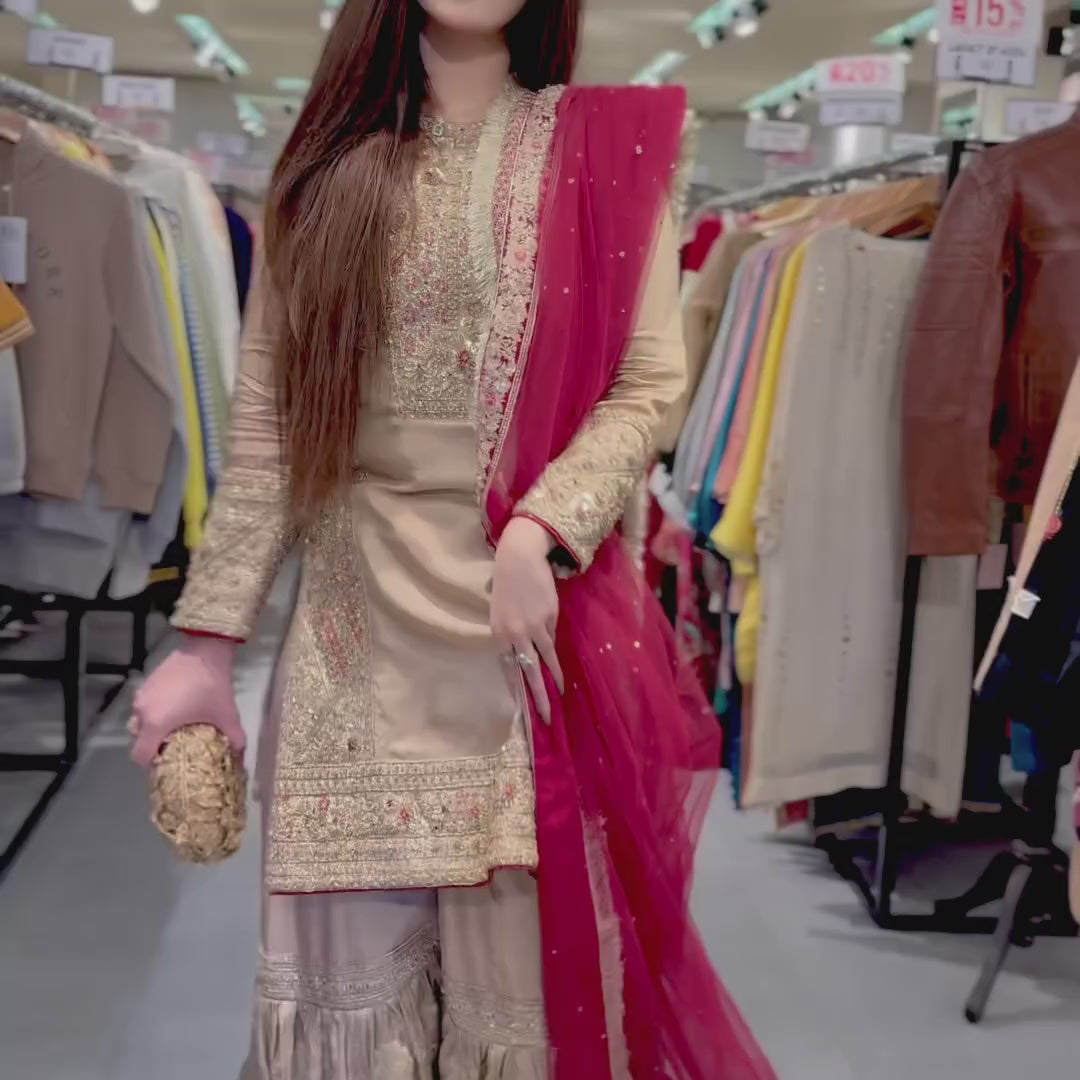 Beautiful chinon silk thread embroidery readymade stitch salwar kameez set