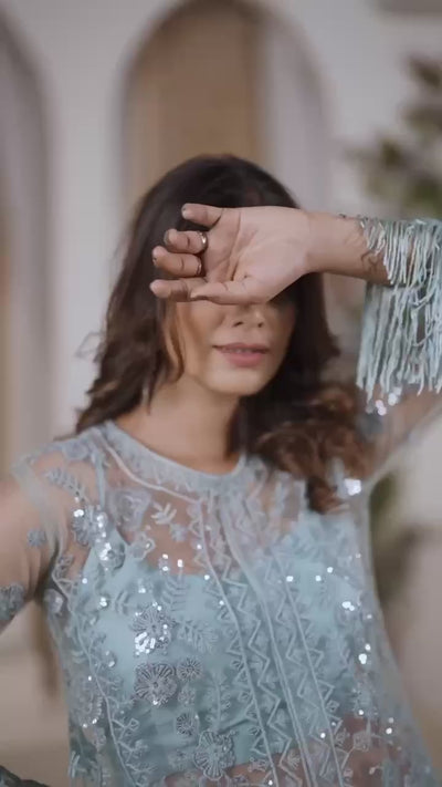 Designer Butterfly Net Top Palazzo Set with Blouse