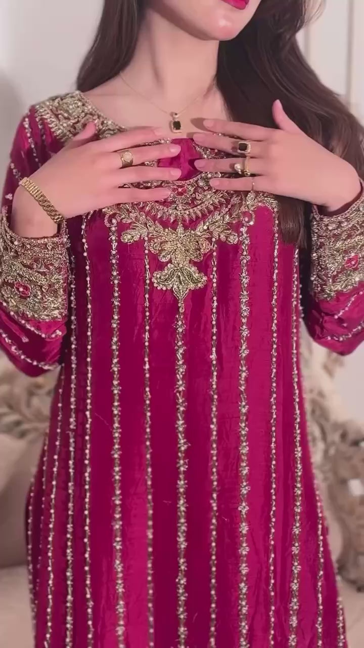 Elegant Embroidered Chinon Silk Suit Set