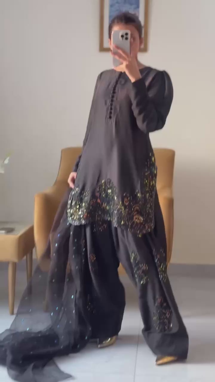 Fabric: Pure Natural Crepe Silk with Embroidery and Sequin Work
