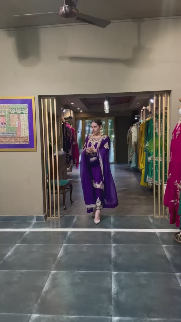 - Fabric: Pure Heavy Chinon Silk with heavy embroidery coding sequence work, full embroidered sleeves
