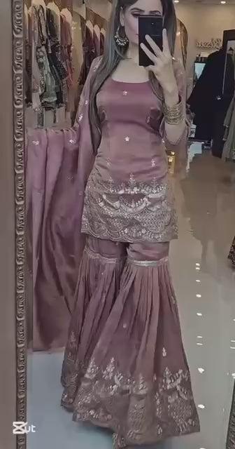 New Designer Party Wear Look – Top, sharara, and Dupatta with Heavy Embroidery Work