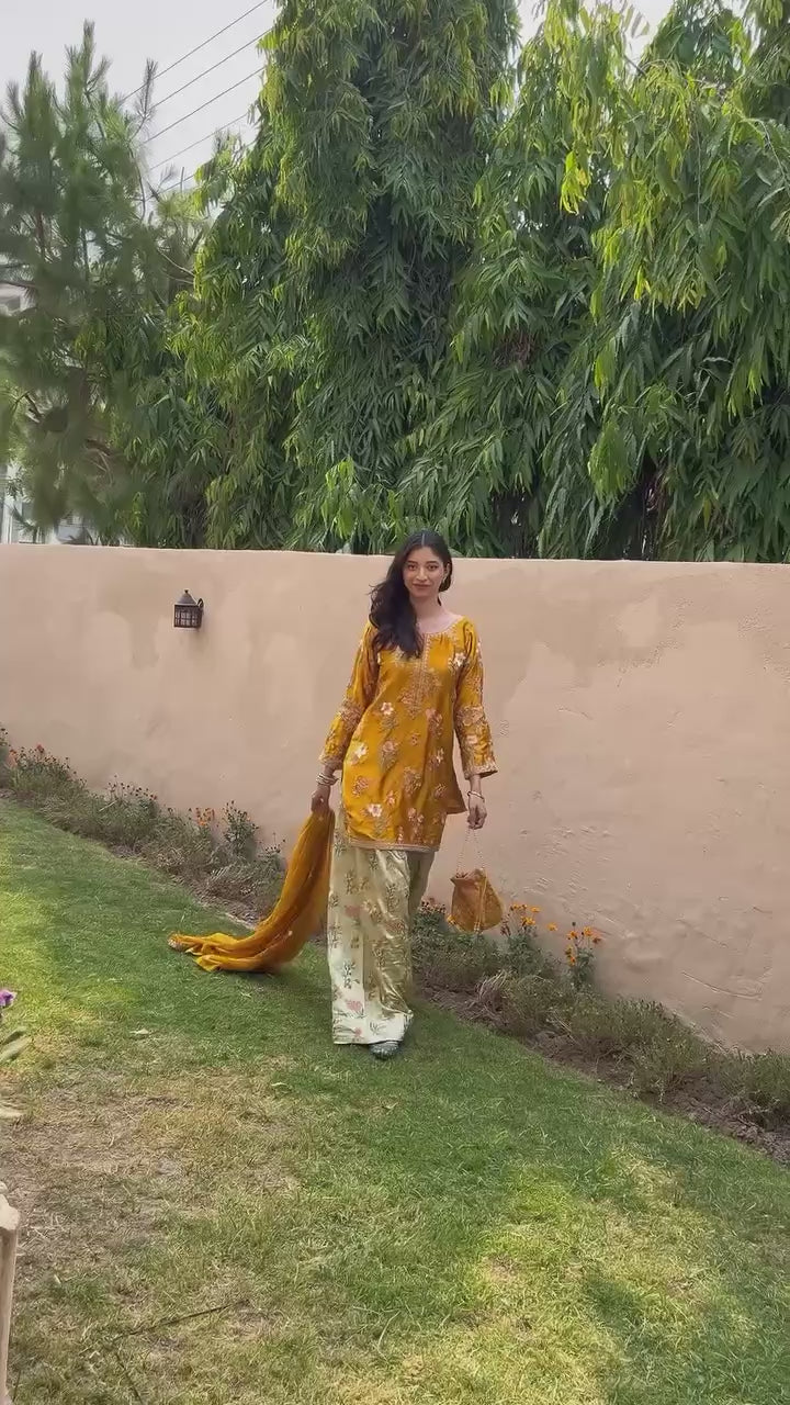 Pakistani New Designer crepe Party Wear Top & Sharara Set with Fancy Dupatta