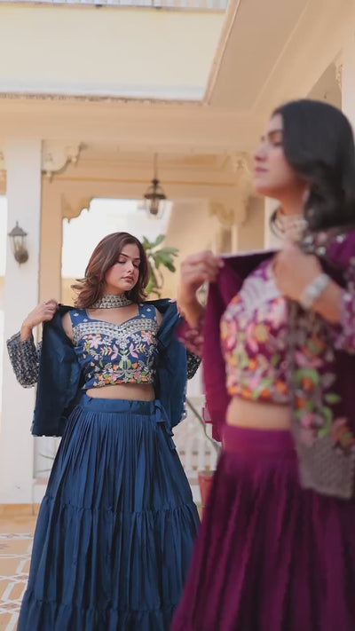 Pure Chinon Kurta Skirt Jacket with Dupatta