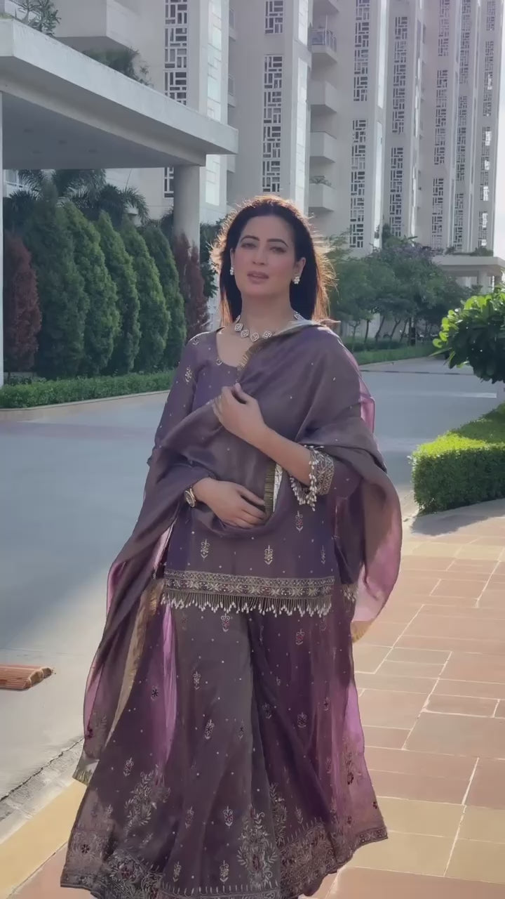 Pure Twill Gold Net with heavy sequin embroidery salwar kameez set