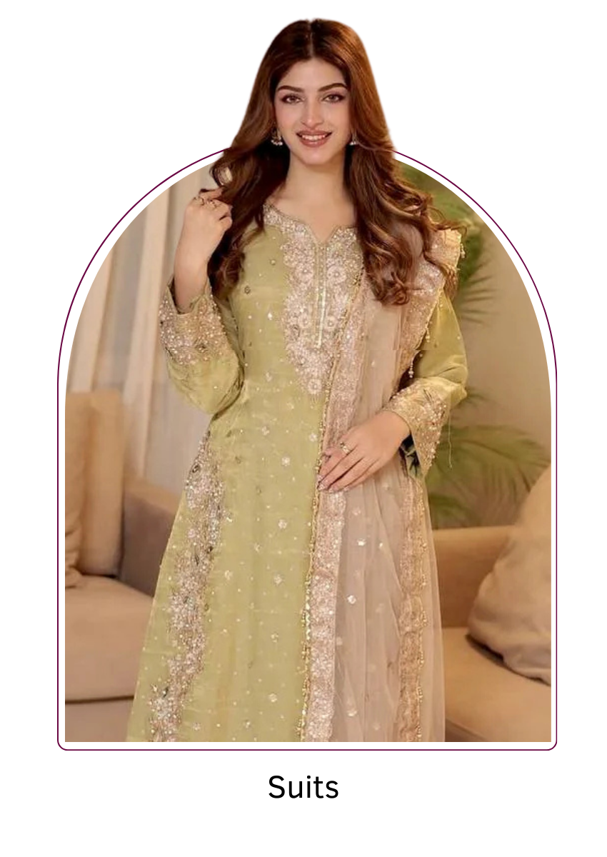 "Luxury Heavy Georgette Embroidered Suit Set with Sequins, Zari & Rivet Detailing"