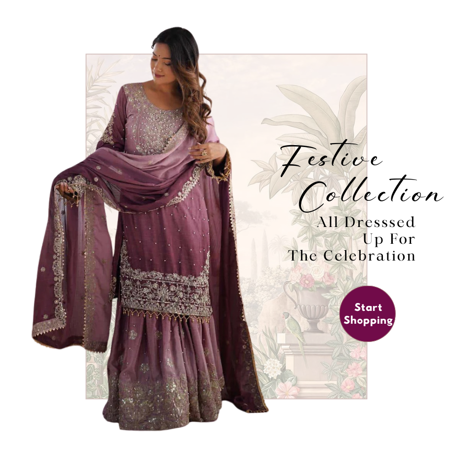 Chinon with Rich Sequins Embroidered Work Kurta Sharara with Dupatta
