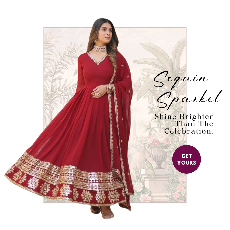 "Elegant Shimmer Vichitra Gown with Sequins Embroidery & Designer Dupatta"